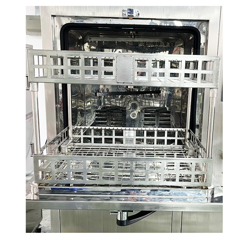 ①机器正面外层门及内层门均采用透明钢化玻璃,方便工作人员观察机内喷淋过程,配合胶边设计,